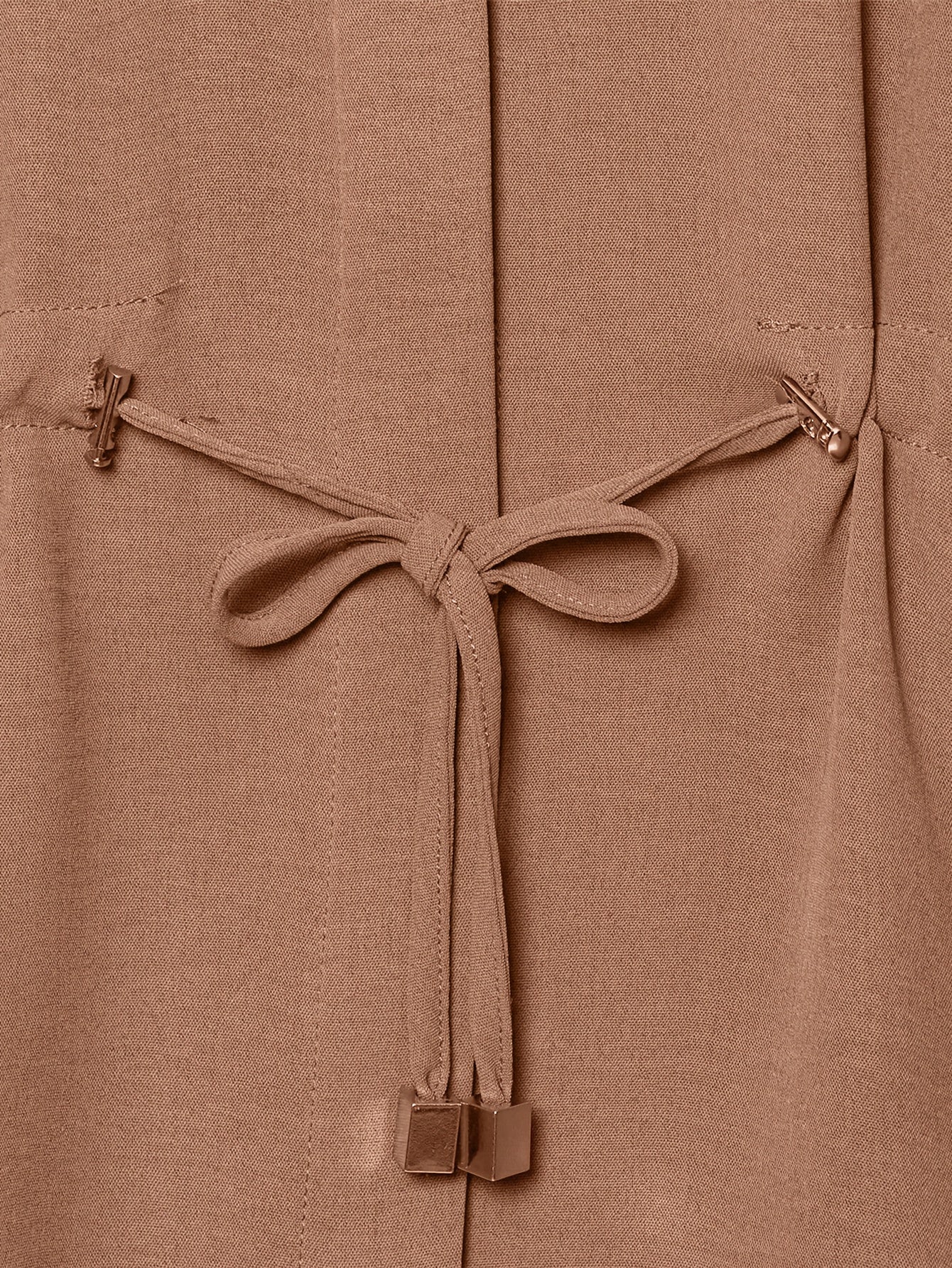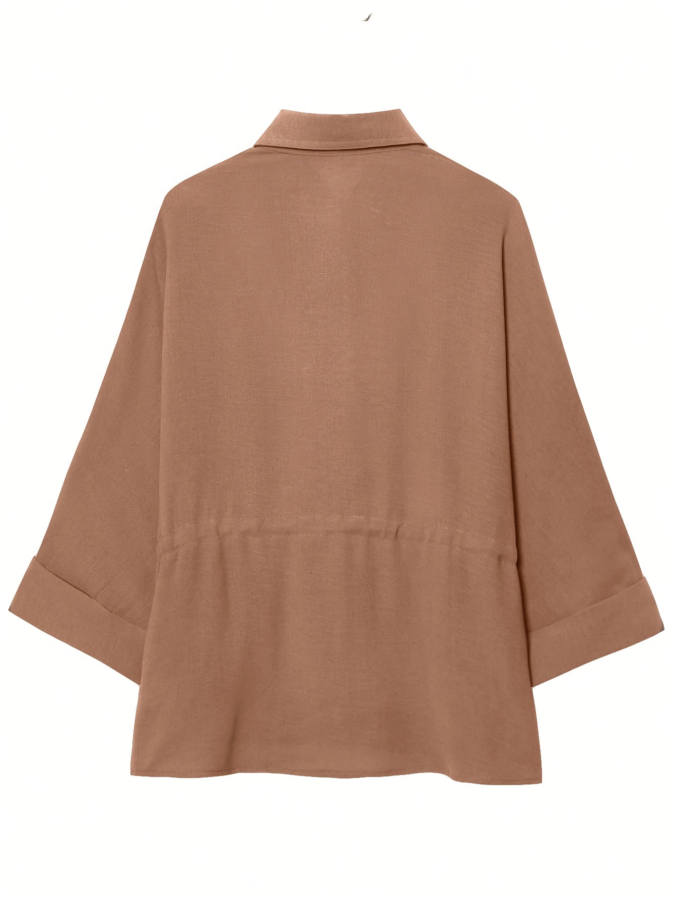 Elegant Women'S Pants Set with Solid Color, Three-Quarter Sleeves, Turn- Collar, Drawstring Design, Casual Loose Top, All-Season Wear, Casual Attire|Elegant Pantsuit|Drawstring Detail