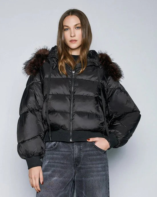 Short puffer jacket with elastic hem